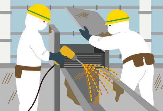 アイザックでは、工場、プラント、設備などの解体を得意としています。様々な薬品が付着した設備の解体撤去後、中間処理施設にて洗浄、分解、選別、無害化します。洗浄後のスクラップは資源としてリサイクルを行うなど、解体から処理まで一貫して行っていますので、安心してお任せください。